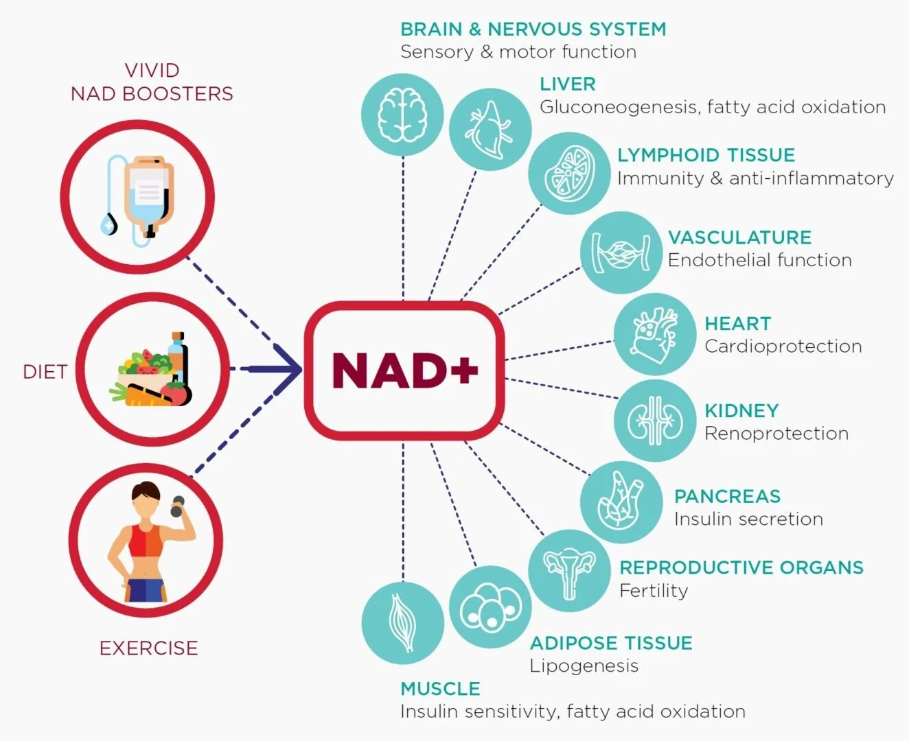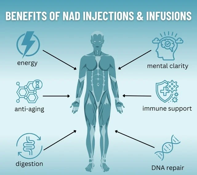 When NAD+ levels are restored — whether through IV therapy, injections, or supplements — your cells can perform at their best again.